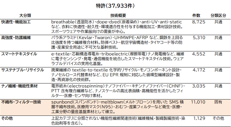 機能性繊維・スマートテキスタイル関連技術の動向分析まとめ